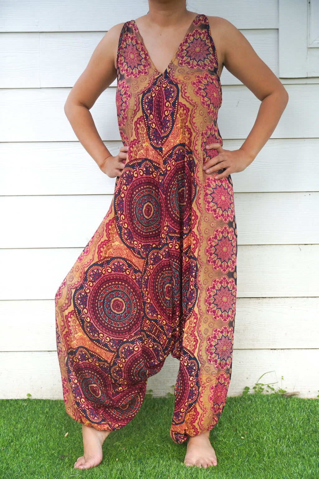 💥One Size Fits Most Comfortable Hippie Jumpsuits Rompers Pants, Hippie Dress, Wide Legs Jumpsuits, Festival Clothings, Summer Clothing, Harem Dress, Beach WearÂ