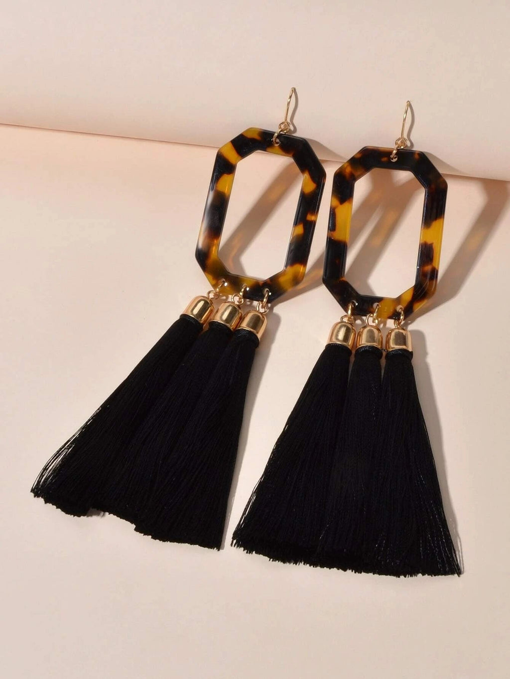 Bohemian Jewellery Leopard Acrylic Black Tassel Dangle Earring Ethnic
