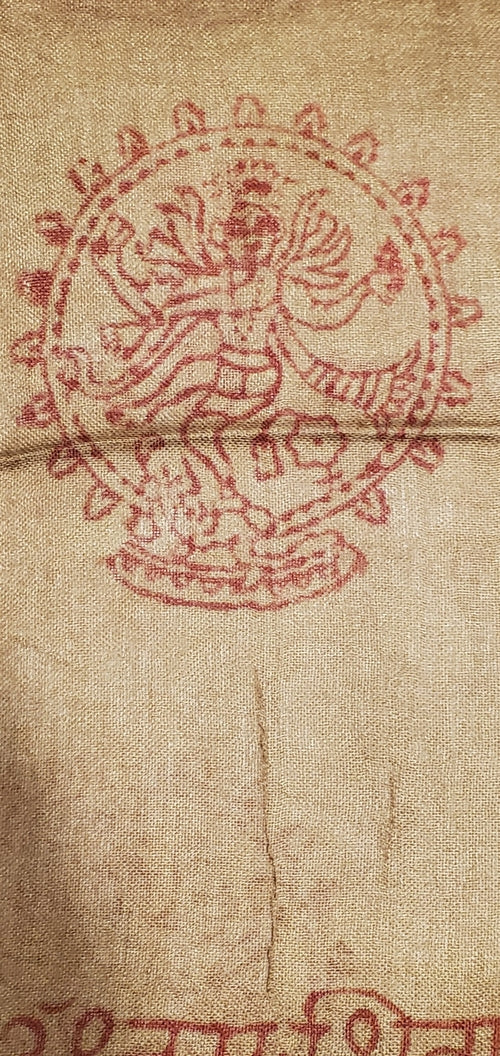 Sanskrit writing and famous Om symbols are some of the recurring designs in this luxurious scarf popping with a lovely blue turquoise color.