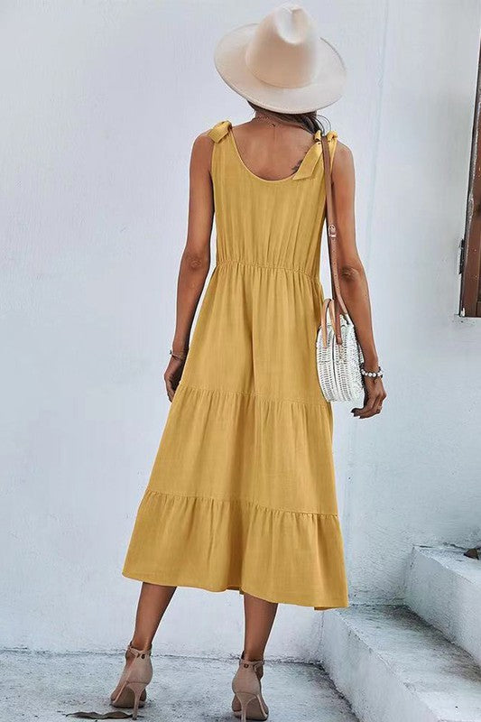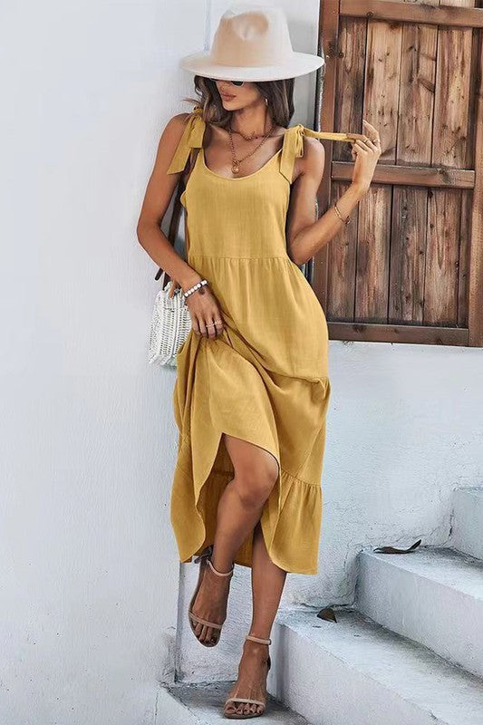 Dress with shoulder tie detail.