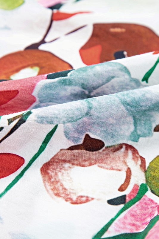 Floral Boho Shirred Bubble Viscose Stripe Blouse