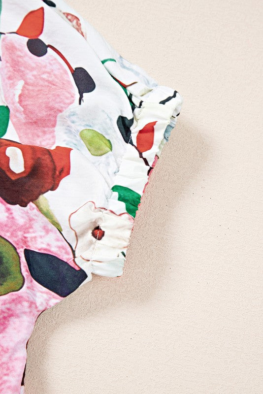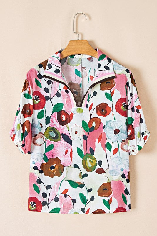 The delicate floral print adds a touch of femininity to this blouse, while the puff sleeves give it a whimsical and romantic feel.