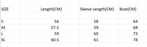 S: 24.0 (Bust), (Waist), null (Hips), 20.5 (Length)